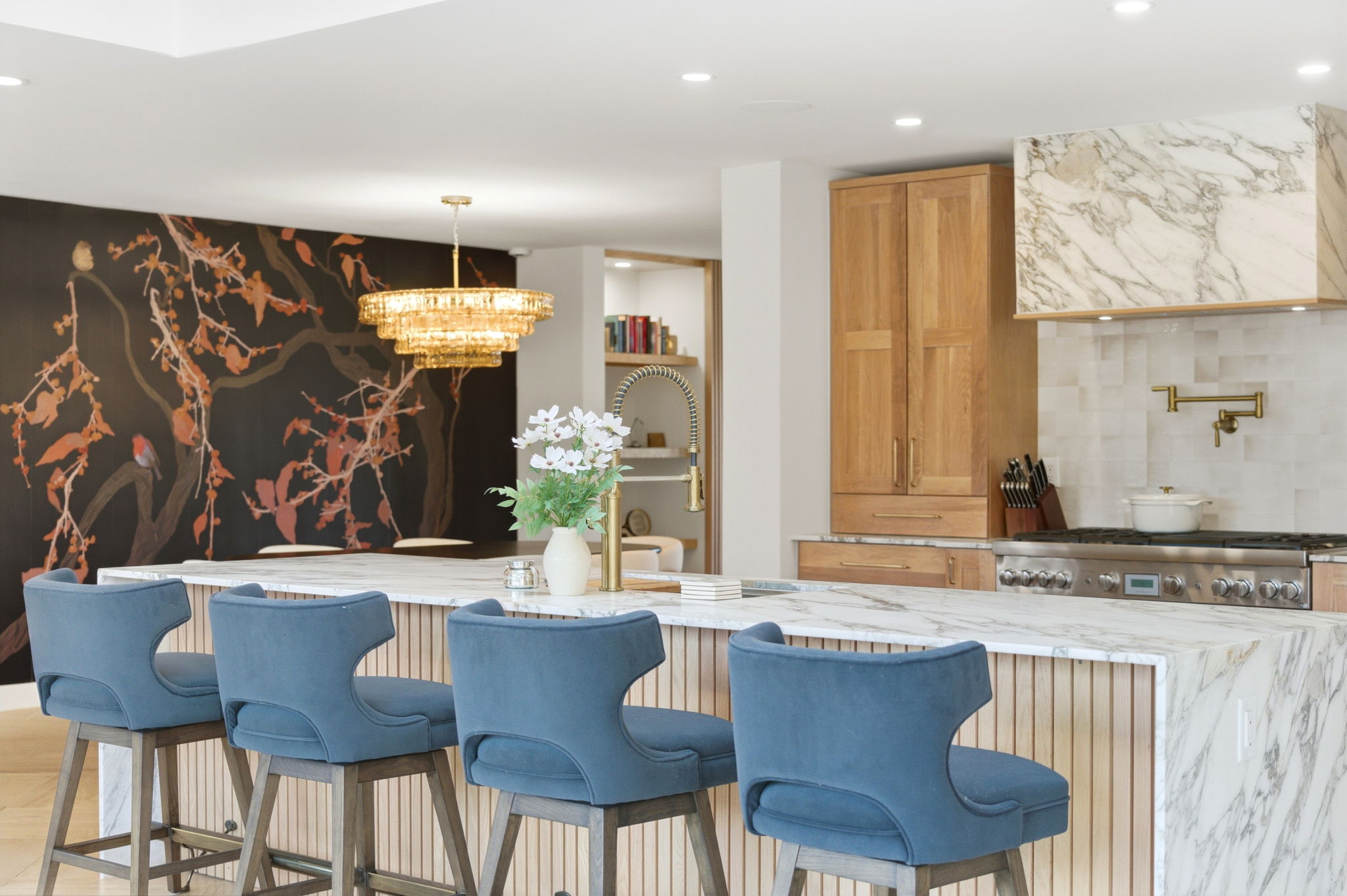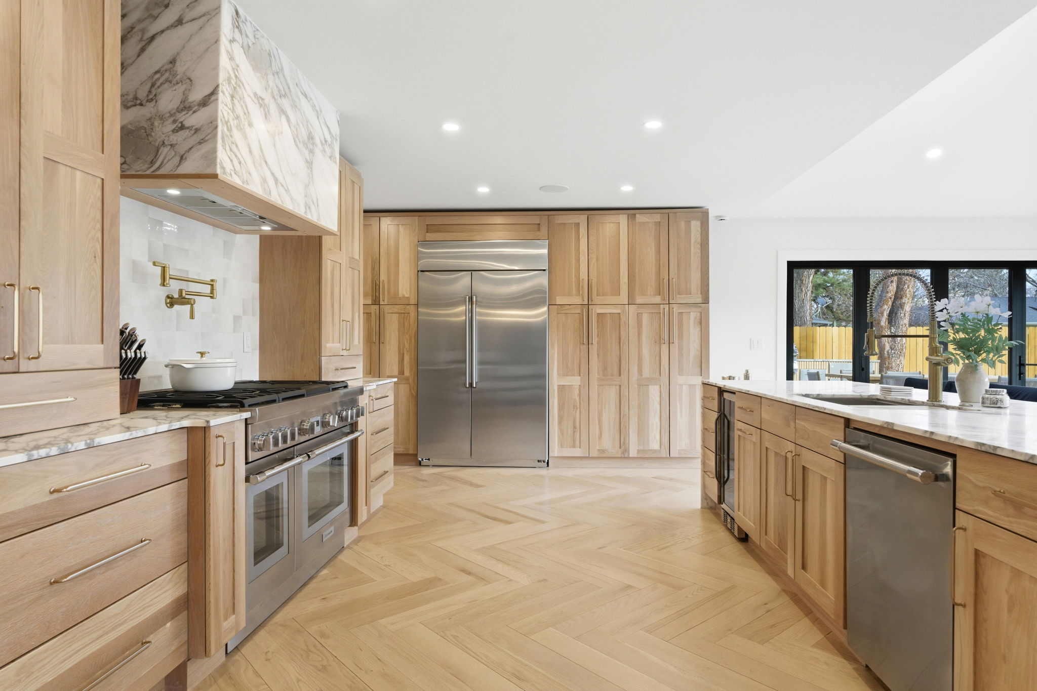 Schroll white oak cabinetry, Calacatta Vagli marble, and Thermador range.