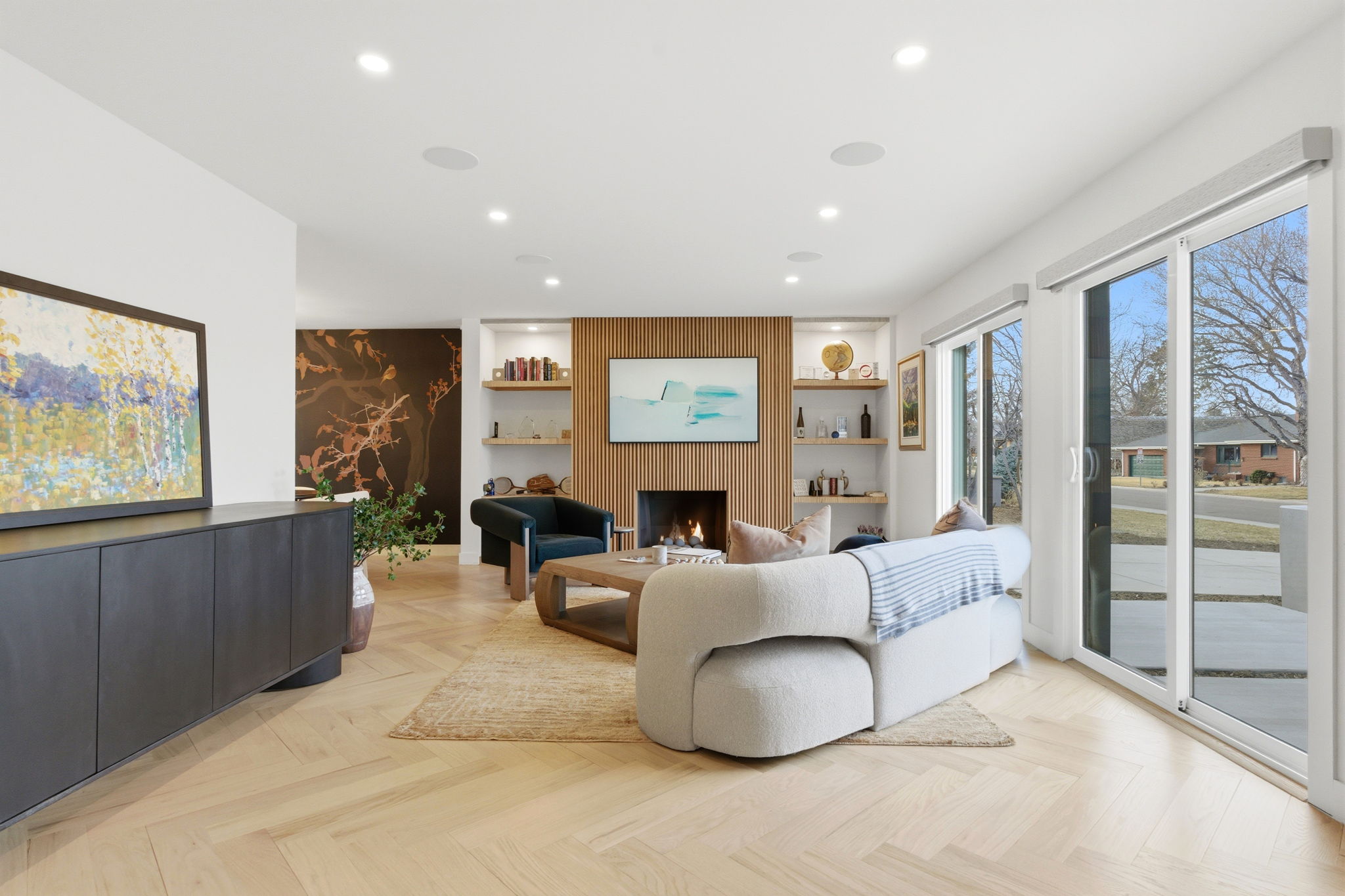 The ultimate Colorado lifestyle home in the coveted Stokes Place neighborhood. Set on an expansive 10,800-square-foot lot along serene, winding streets lined with mature trees, this fully remodeled modern residence offers a rare combination of privacy, sophistication, and seamless indoor-outdoor living—just minutes from Cherry Creek. Designed with meticulous attention to detail, the home showcases 28 feet of Nano doors that open effortlessly to the outdoors, creating an unparalleled entertaining experience. Stunning wide-plank white oak herringbone floors anchor the main level, complemented by two gas fireplaces and curated designer finishes throughout.